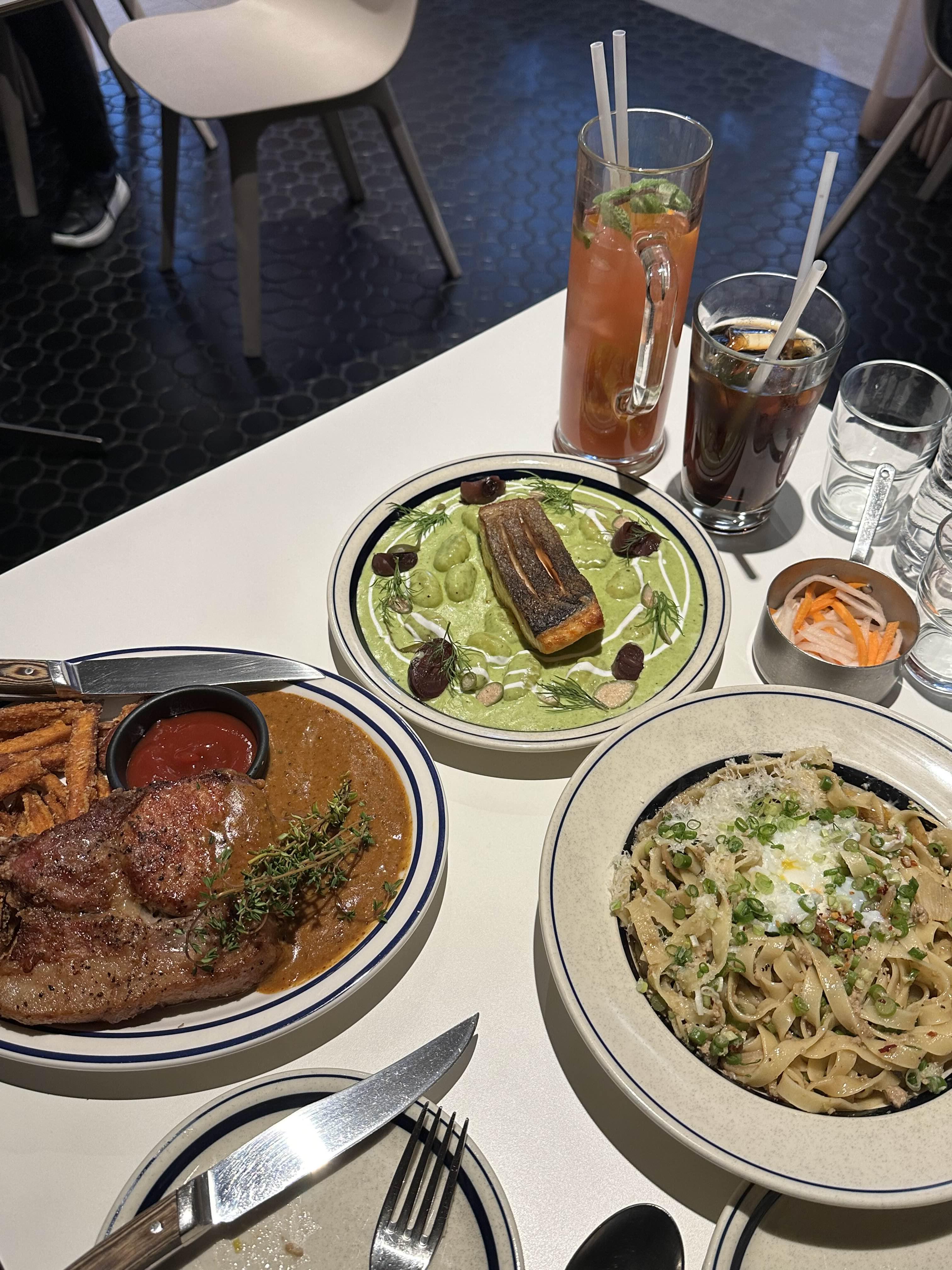 저희는 키친마이야르 스테이크, 소보로 파스타, 고추냉이 크림뇨끼 연어스테이크, 오딸바 에이드 이렇게 시켜봤습니다. 리뷰를 봤을 때 양이 많다는 리뷰가 많아서 이렇게 시키면서도 많이 남길까봐 걱정했었습니다. 근데 웬걸? 다 먹었지 뭡니까 ~? 무튼 둘이서 3개 시키길 잘했습니다. 언제 또 갈지 모르니까 간 김에 다 먹어봐야지요. 저흰 남김없이 싹싹 잘 긁어먹었습니다.