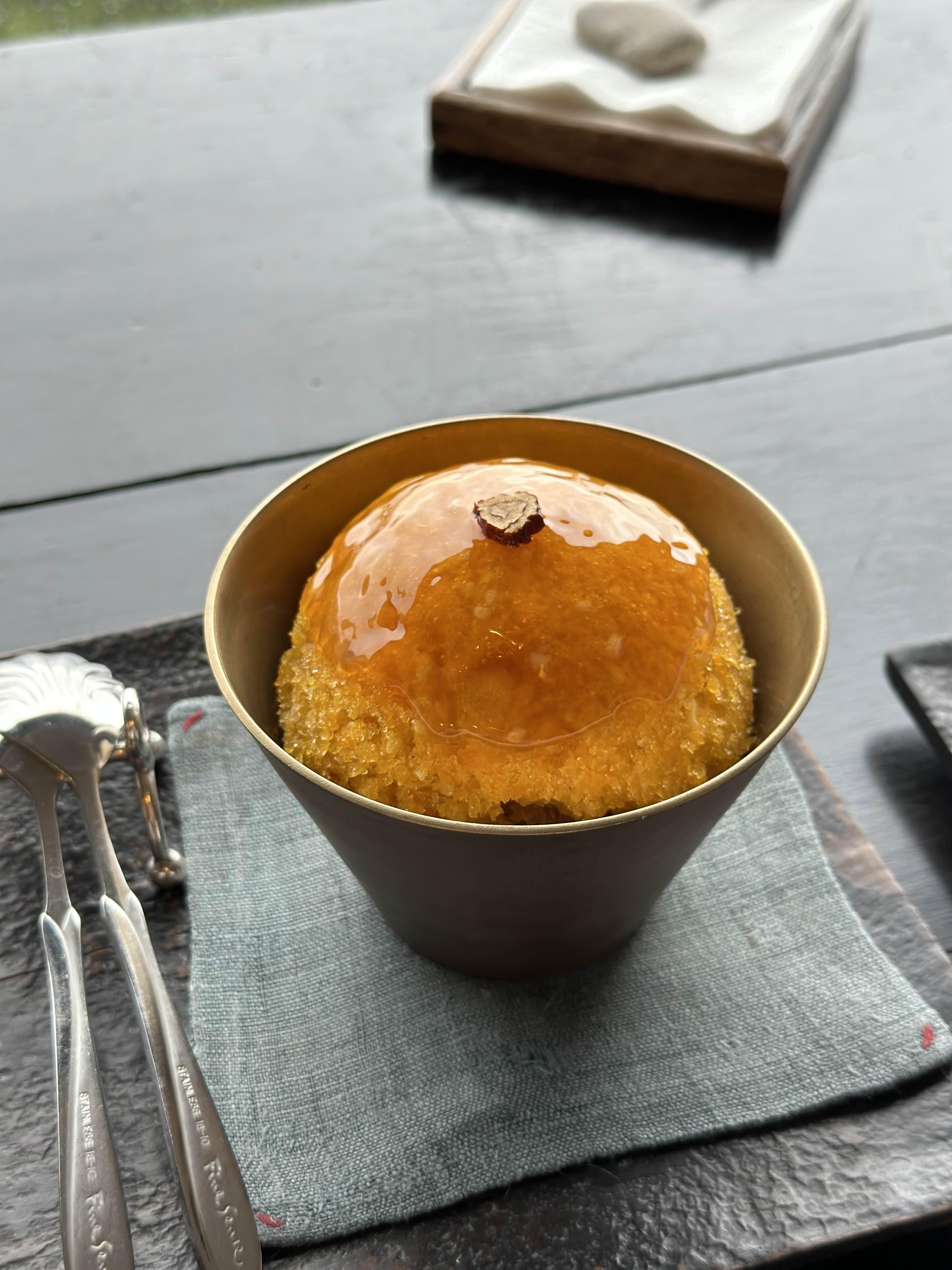 단호박식혜를 간 빙수에 위에 조청을 얹은 느낌인데 요게 참 맛있습니다. 빙수안에 뭐가 없는데 왤케 맛있죠?
