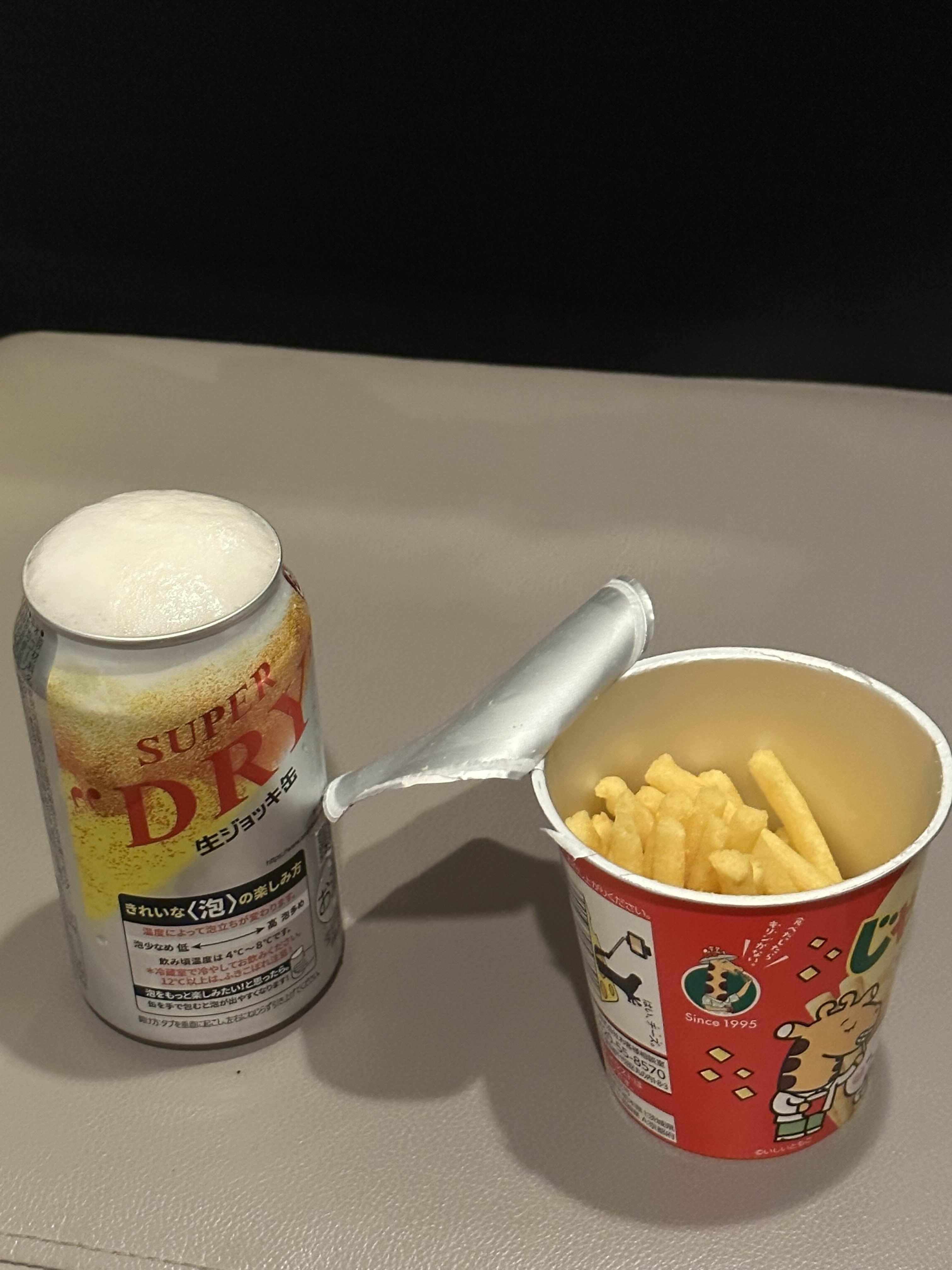 이건 전날 숙소에서 먹은 아사히드라이와 자가비입니다.